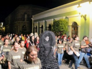 Many in the crowd also wear skull masks or skeleton costumes, and a group of hundreds if not more than a thousand dances and sings its way through the streets of downtown, visiting the various altars to help the white and black Katrinas accompany the souls of those who have left this life during the year safely to the afterlife. Do not miss the callejoneada!