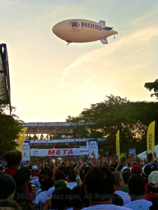 The Pacífico blimp over the starting line