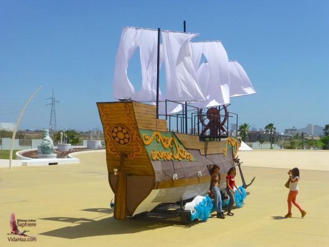 The Hasekura ship from the Carnavál parade, parked in front of the Convention Center