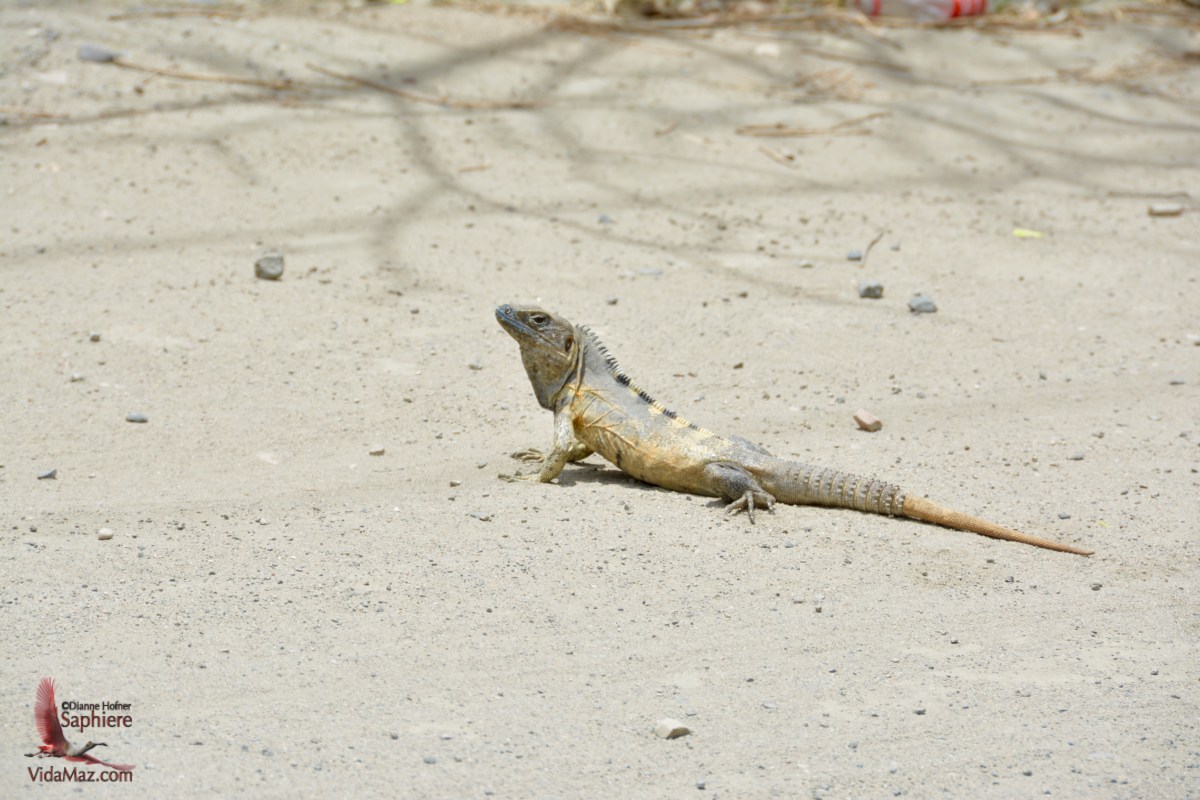 An iguana crossing the road