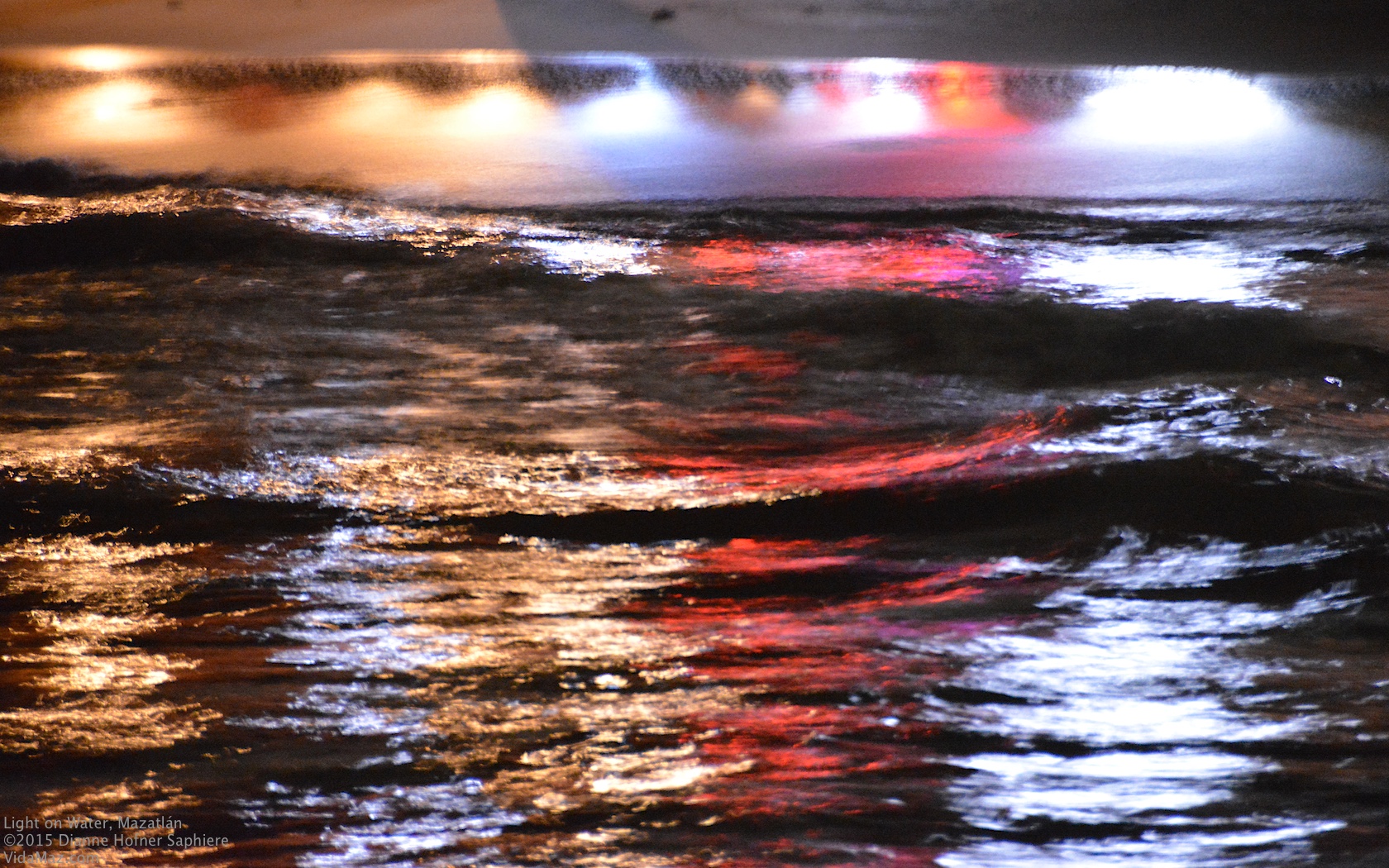 Restaurant lights reflecting in the waves
