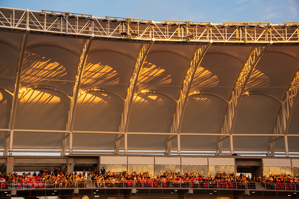 Sunset colors and reflections on the new stadium roof