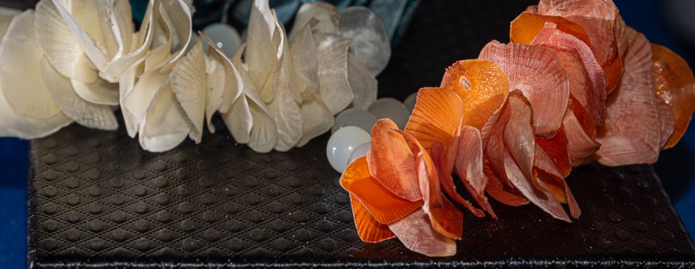 The fish scales remind me of flower petals. These bracelets look like leis.