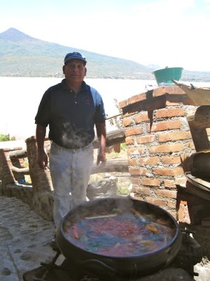 There is a horrible and also encouraging history of cross-cultural impact here. The Spanish conquistador Nuño de Guzmán burned alive P’urhépecha chieftain Tangaxuan II, and then largely dismantled Tzintzuntzan in order to use the stones for the Fransiscan monastery of Santa Ana, modern-day Templo de San Francisco. Fortunately, Don Vasco de Quiroga followed in 1530, a Spanish bishop wise enough to teach each pueblo around the lake a handicraft—lacquerware, copper smithing, wood and rock carving, pottery, basketry, embroidery, furniture making… The P’urhépecha have kept alive and perfected these crafts, and that handiwork supports them to this day, to the delight of artisan-lovers worldwide. It’s difficult to visit this area and not leave with a car-full of artesanía, as we do; it’s all just so gorgeous.