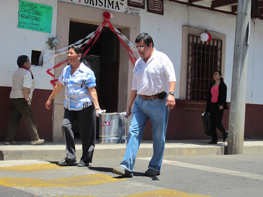 During the festivities it is very dusty; I recommend taking closed-toed shoes and wearing socks. Many of the dancers wore a bandanna around their nose and mouth, so they wouldn’t inhale all the dust. It’s also hot and sunny, so take your hat, sunglasses, and sunscreen. You can buy water and soft drinks in the plaza, but public toilets were a rare commodity. The ladies of the church were selling food and drink, trying to raise money to build some.