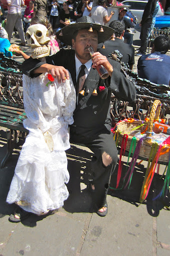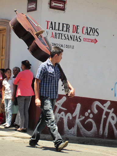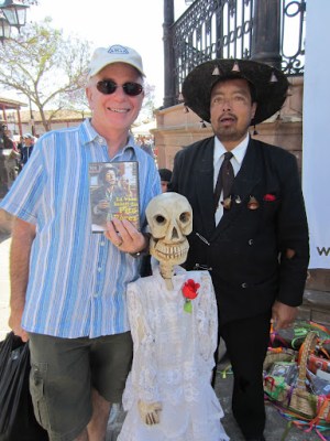 Still no sign of a procession to begin ahorita, we walked through the copper fair that was going on in the main plaza. There we met Pito Pérez, reincarnated, selling DVDs of movies about his life.
