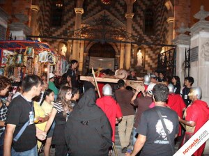 One of the biggest reenactments here in town has traditionally been PAJUMA (Pascua Juveníl de Mazatlán), a three-day diocesan event that takes place in the baseball stadium. On Good Friday the kids reenact the crucifixion of Christ in the stadium and then, still fully costumed, process silently from the stadium at about 5:00 pm, to the Cathedral of the Immaculate Conception downtown, passing by the Aquarium, along the malecón, the Fisherman’s Monument, and the pangas in Playa Norte. The procession then turns left and goes down through Plaza Zaragoza to the cathedral. There are not many places in the world you can see a Way of the Cross enacted along the oceanfront! I’ve called them and messaged them, but am unable to confirm if it will be the same schedule this year.