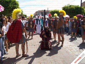 The celebration in Chametla this year is entitled “Calvario.” The play will involve over 60 actors who will walk over two kilometers, beginning on the main street, just down from the cathedral in front of the tostada stand called “Mangazo” or “El Chombi.” From there the procession will wind though town—it takes a different route each year—ending with the crucifixion this year on the hill in front of the cemetery.